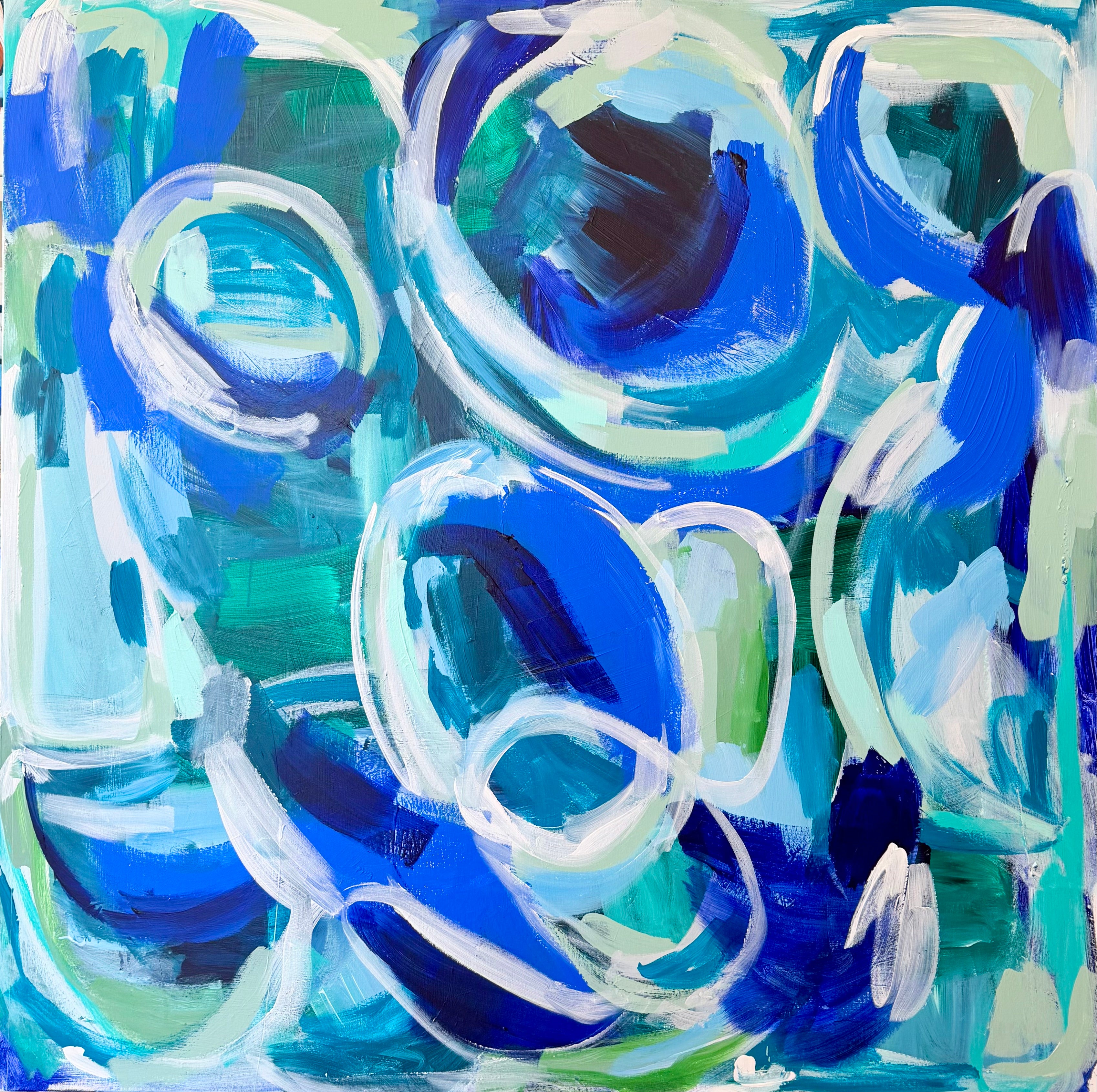 Immaculate Part II continues the conversation in saturated cobalt and teal, with circular forms that generate their own internal gravity. The surface shifts between opacity and translucence, allowing motion to build without losing structural integrity.