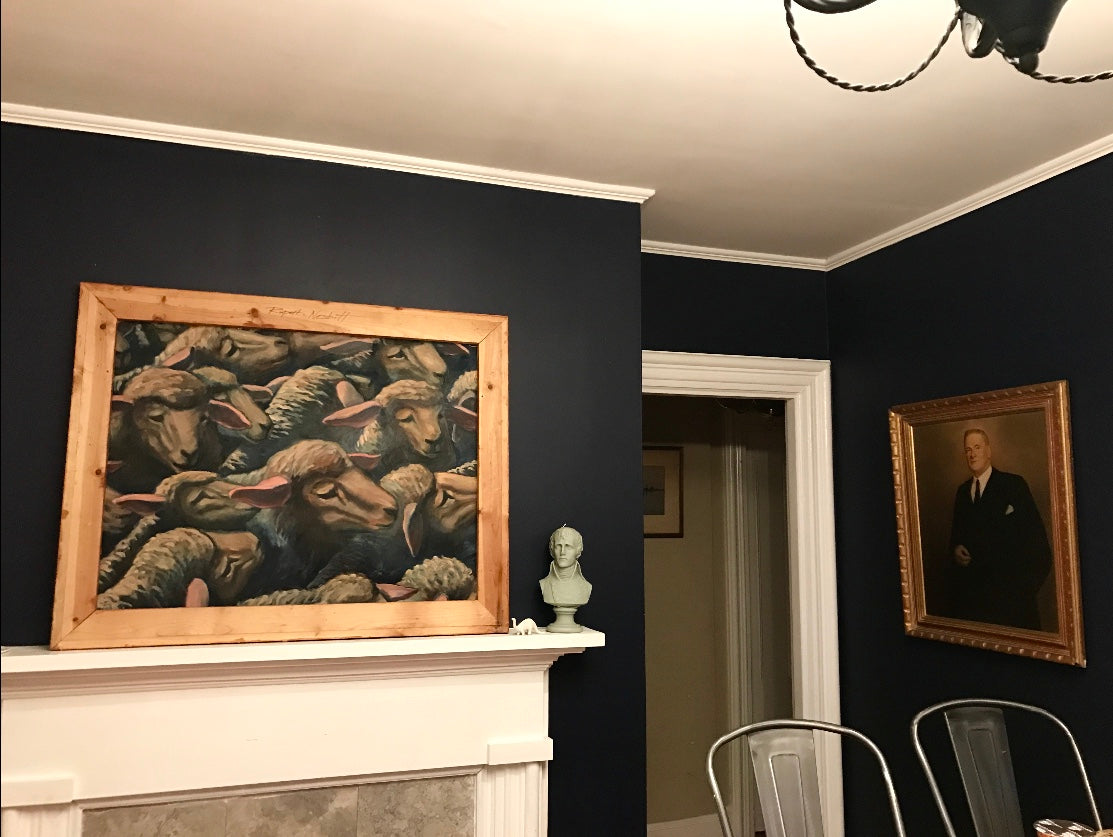 This piece is by my dear friend Rupert Nesbitt, but I was not the first to own it. A mutual good friend and patron of the arts had this hanging in her Middletown home when I first saw it in 2012. I was immediately drawn to it from across the room and naively said "not that I could ever afford it, but if you are ever able to part with this I would love to buy it from you." I never thought I would see the piece again. A couple of years ago the collector sold her estate and was looking for buyers to consider her art collection. It was meant to be and the Sheep and I were united.