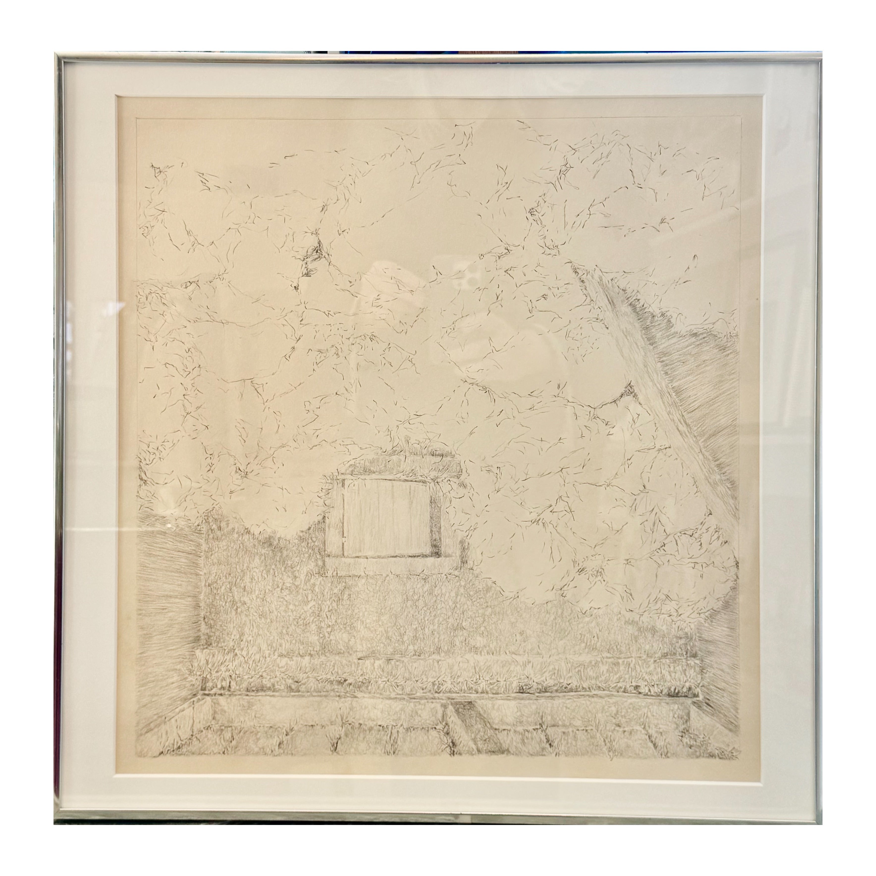 Garden Sketch DrawingForgotten Island20.25”H x 20.25”W FramedInk on paper